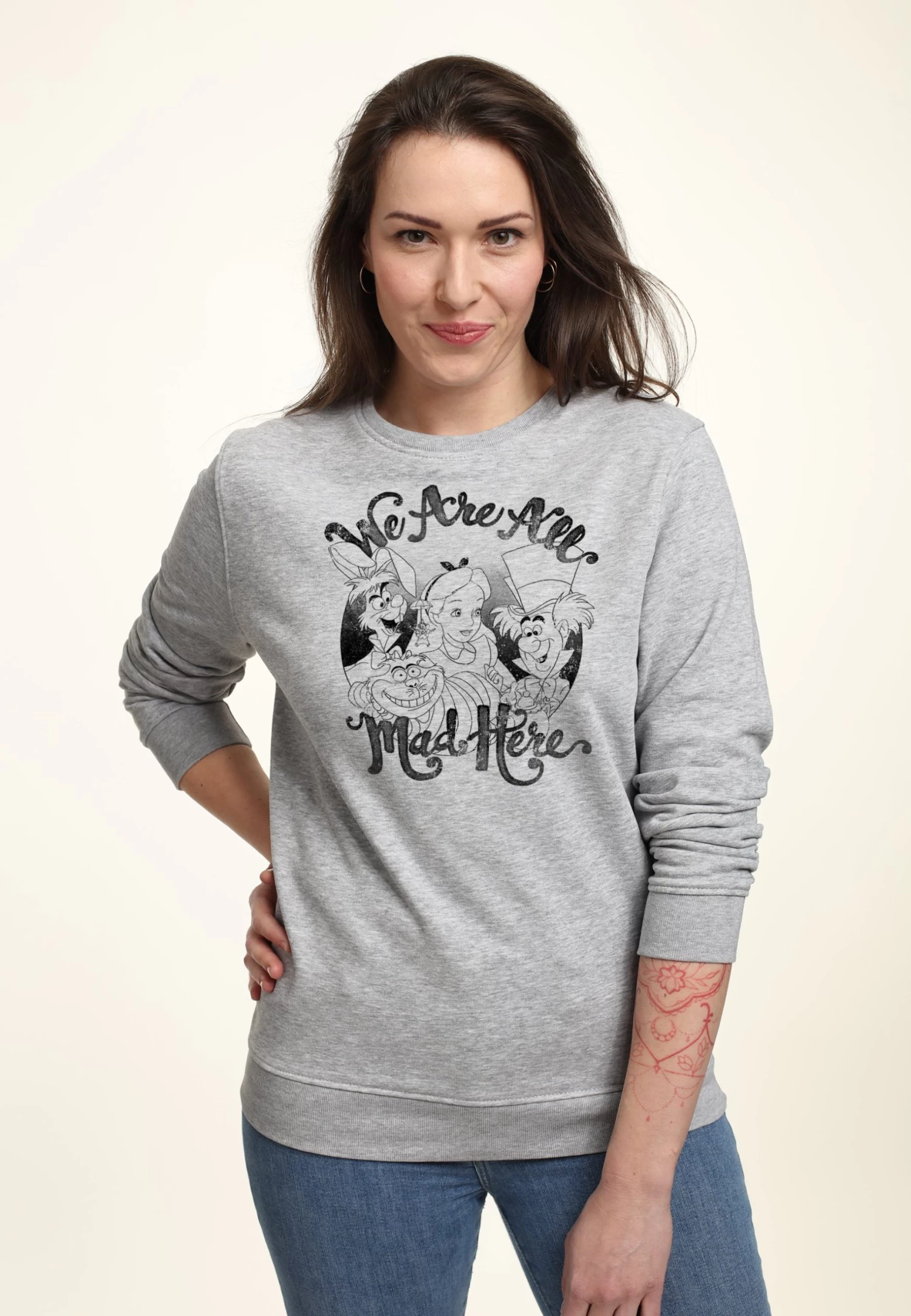 Disney Alice In Wonderland All Mad Here – Sweater – Heather Grey