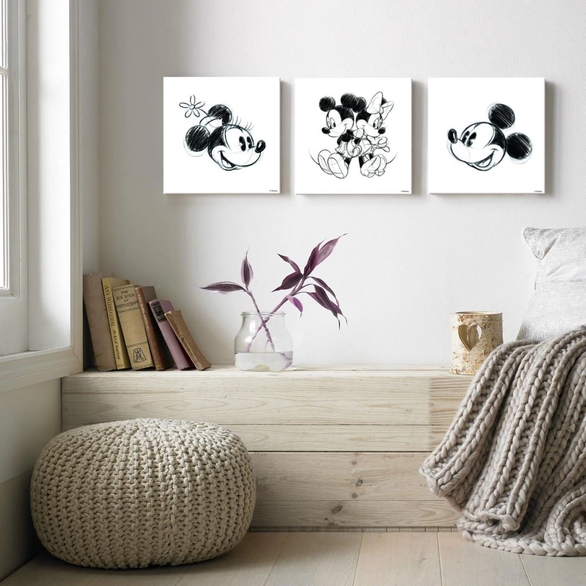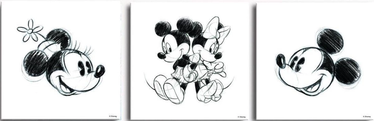 Deze 3-delige canvassen set bevat schetsen van Mickey & Minnie Mouse.