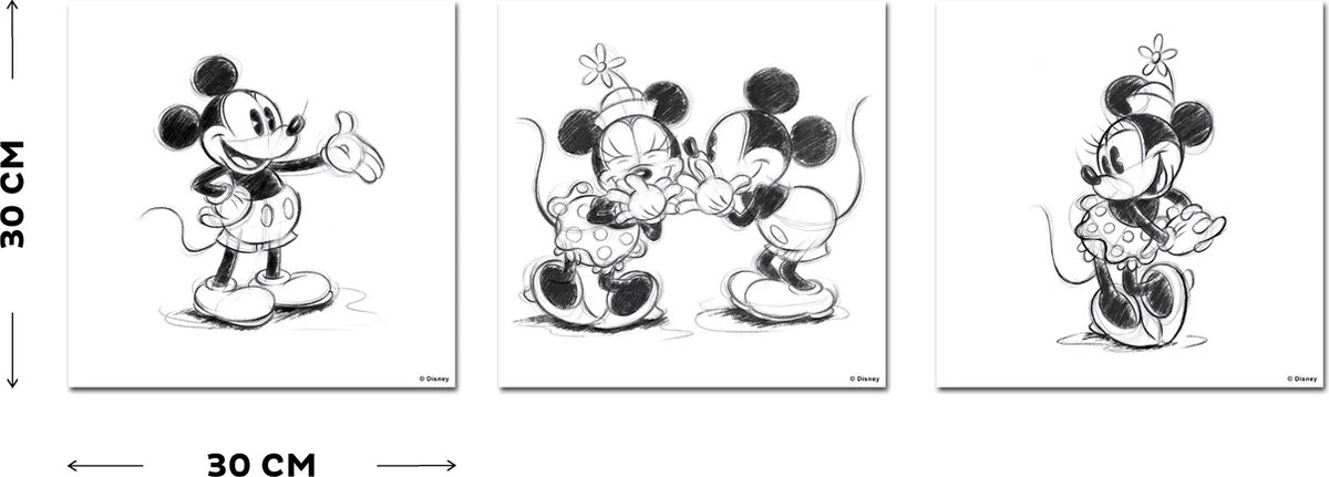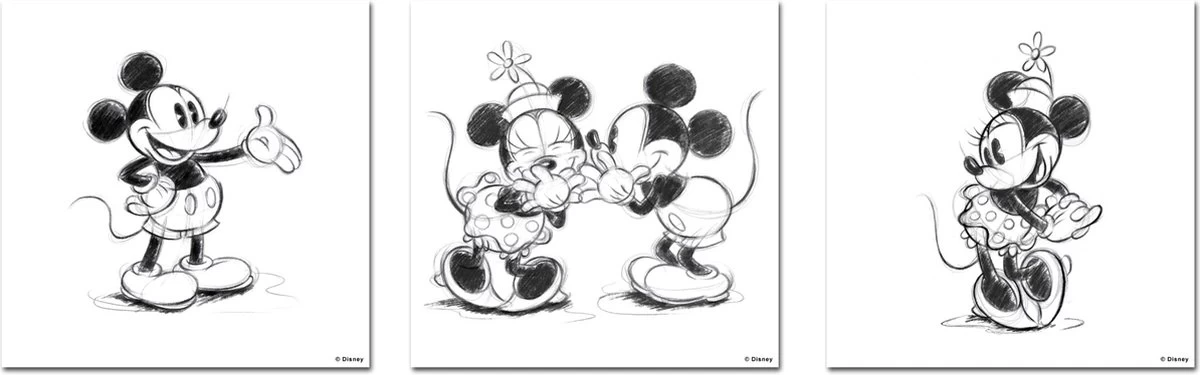 Disney – Canvas Set Van 3 – Mickey & Minnie – Sketches – 3x30x30cm