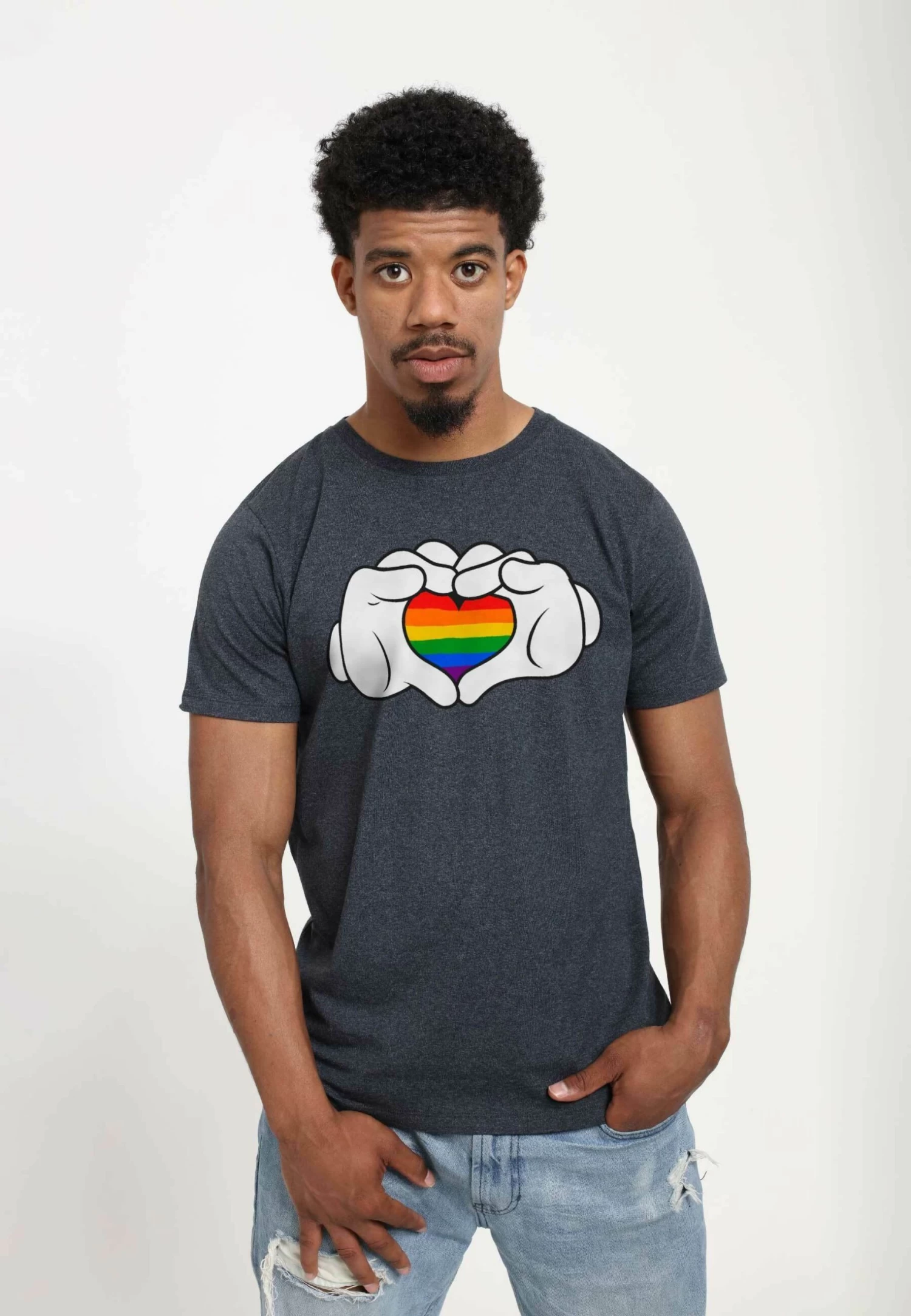Disney Classic Mickey Rainbow Love Unisex – T-Shirt Print – Melange Black