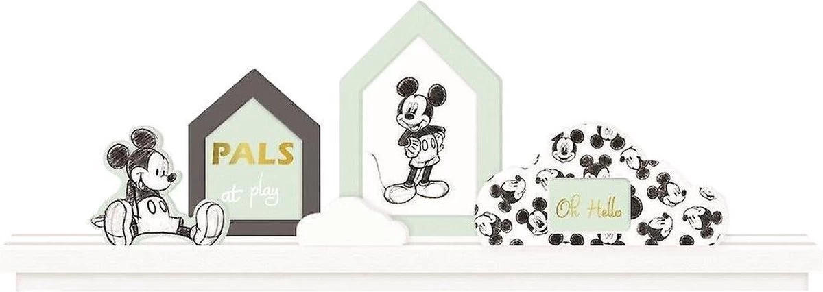 Een prachtig fotorek waar drie foto’s in kunnen van Disney. De fotolijsten zijn in de vorm van twee huisjes en een wolkje.