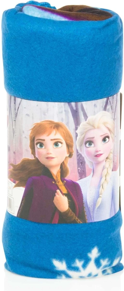 Disney Frozen Fleece deken, Blauw. Op dit mooie fleeceplaid zie je de bekendste personages van Disney Frozen: Anna en Elsa! Ondanks het winterse tafereel hoef je niet bang te zijn dat je het koud zal hebben onder dit fijne fleece deken. Voor elke liefhebber van Disney Frozen is dit een fantastisch cadeau!