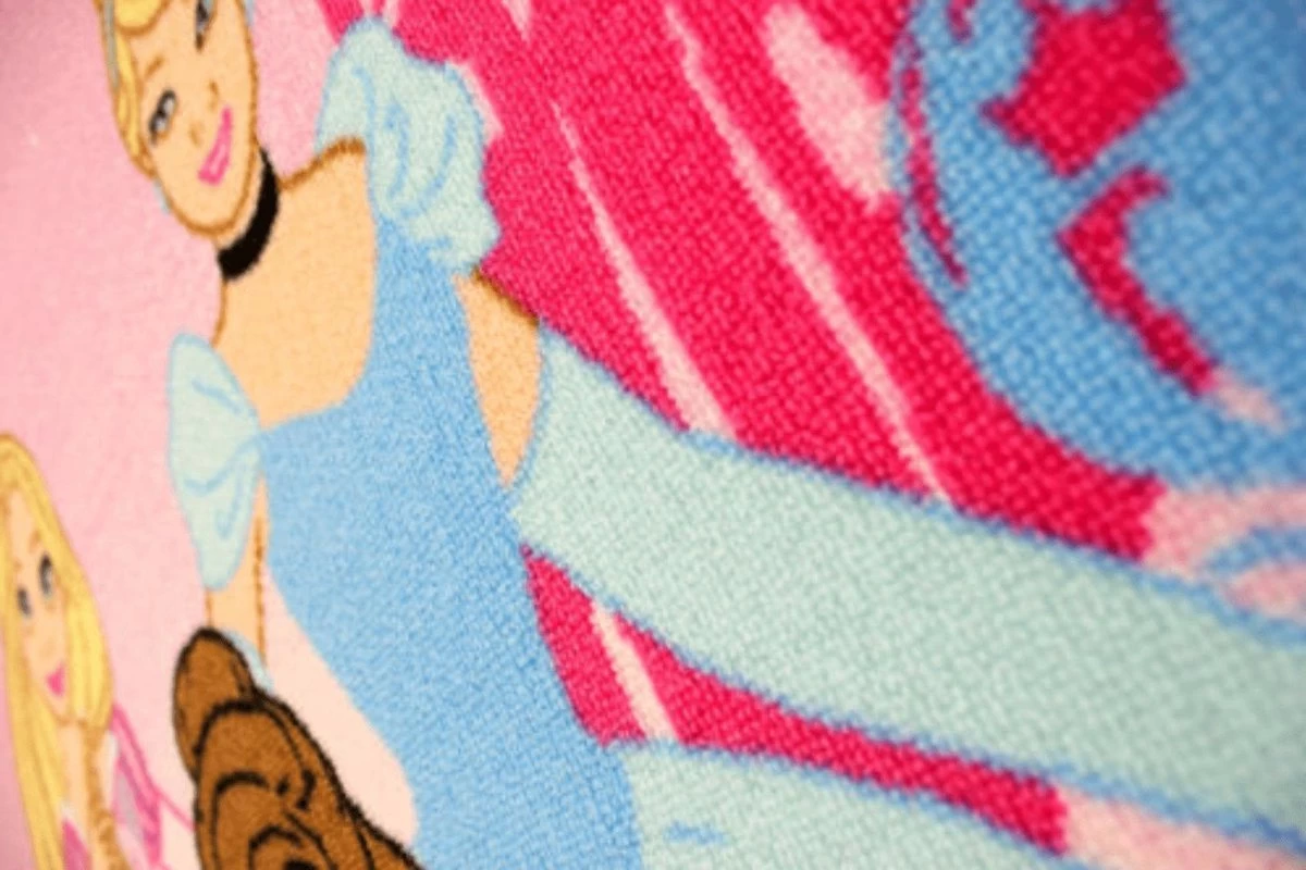 Disney Princess speelkleed is een roze vloerkleed met een afbeelding van drie Disney prinsessen in prachtige jurken.