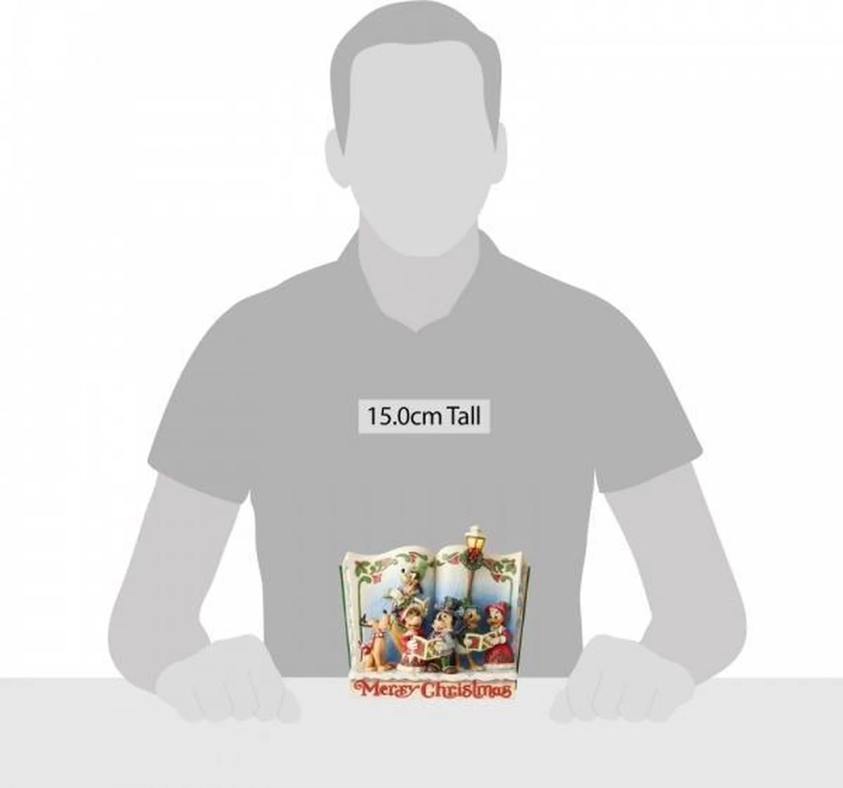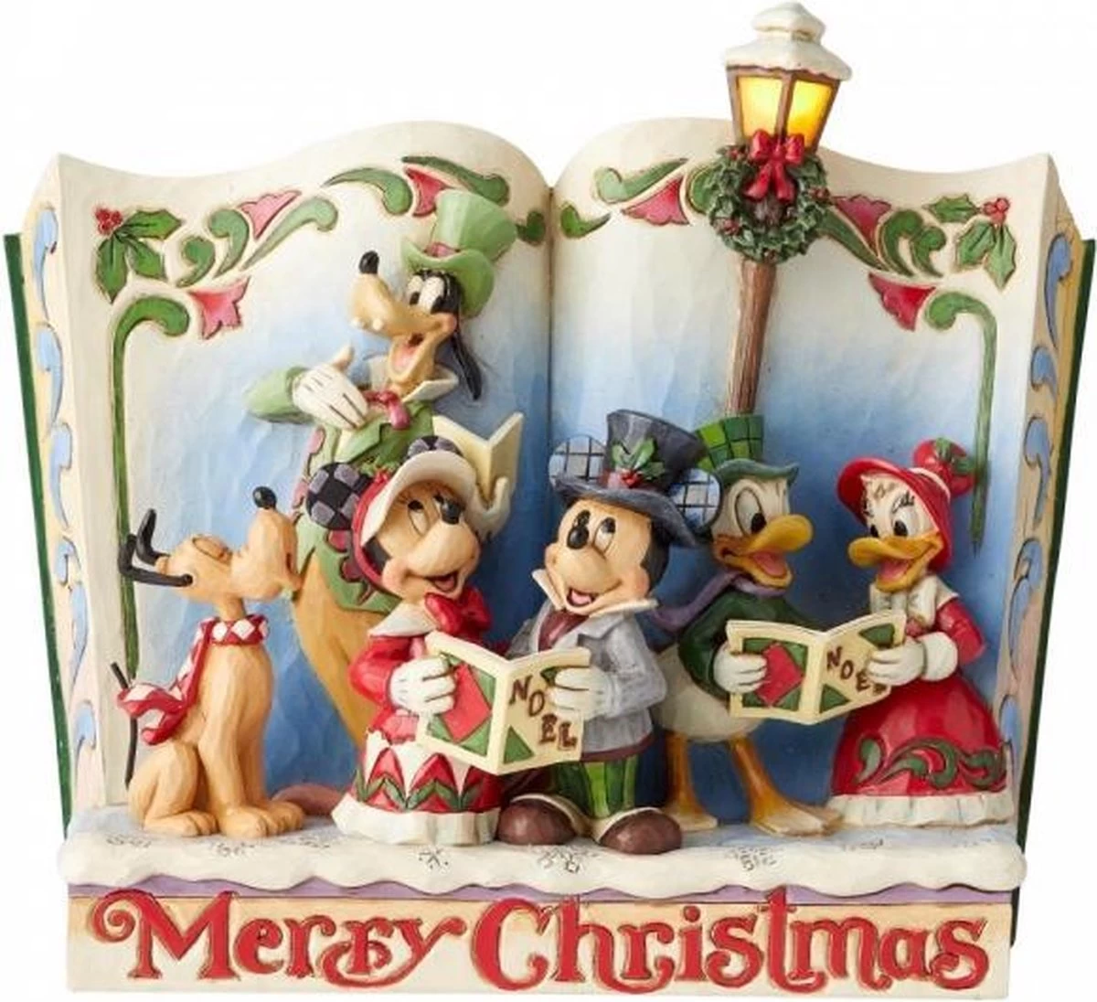 Christmas Carol Storybook met Mickey Mouse, Minnie, Donald en Pluto. Prachtig beeldje uit de Disney Traditions Storybook-serie… spaar ze allemaal! Met dit beeldje haalt u een stukje Disney Magie in huis. Disney Traditions by Jim Shore-beeldjes worden al jaren ontworpen de gelijknamige Amerikaanse kunstenaar. Hij is staat bekend om zijn quilt-achtige patronen en kleurgebruik. Zijn creaties lijken uit hout gesneden, maar worden van Poly Resin vervaardigd en zijn stuk voor stuk handbeschilderd. Minimale kleurverschillen kunnen dus voorkomen. De warme, nostalgische uitstraling van de beeldjes zorgt voor een grote schare liefhebbers en verzamelaars uit alle lagen van de bevolking en over de hele wereld. De Disney-creaties van Jim Shore zijn gelicenseerd en worden geproduceerd door Enesco. Ieder beeldje wordt in een op-maat-gemaakte verpakking geleverd.