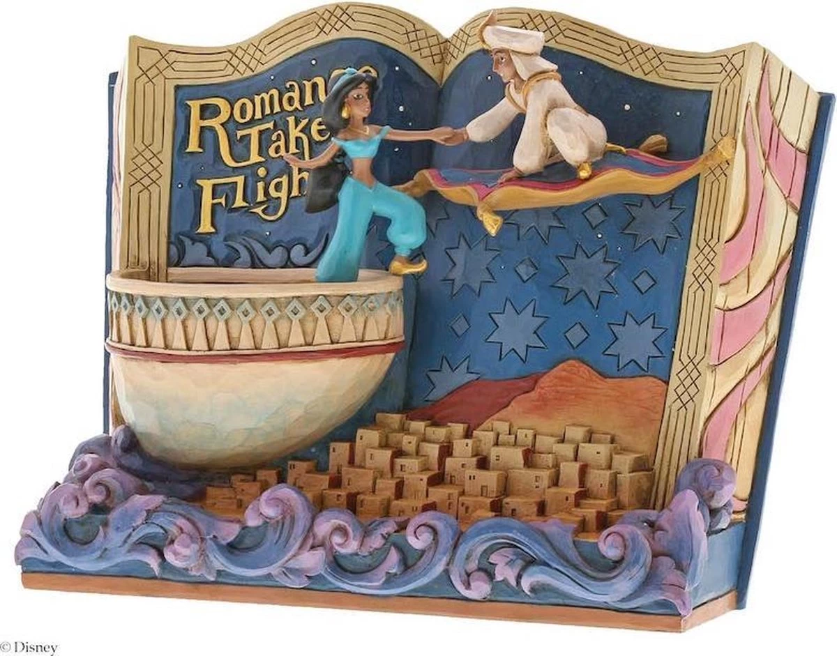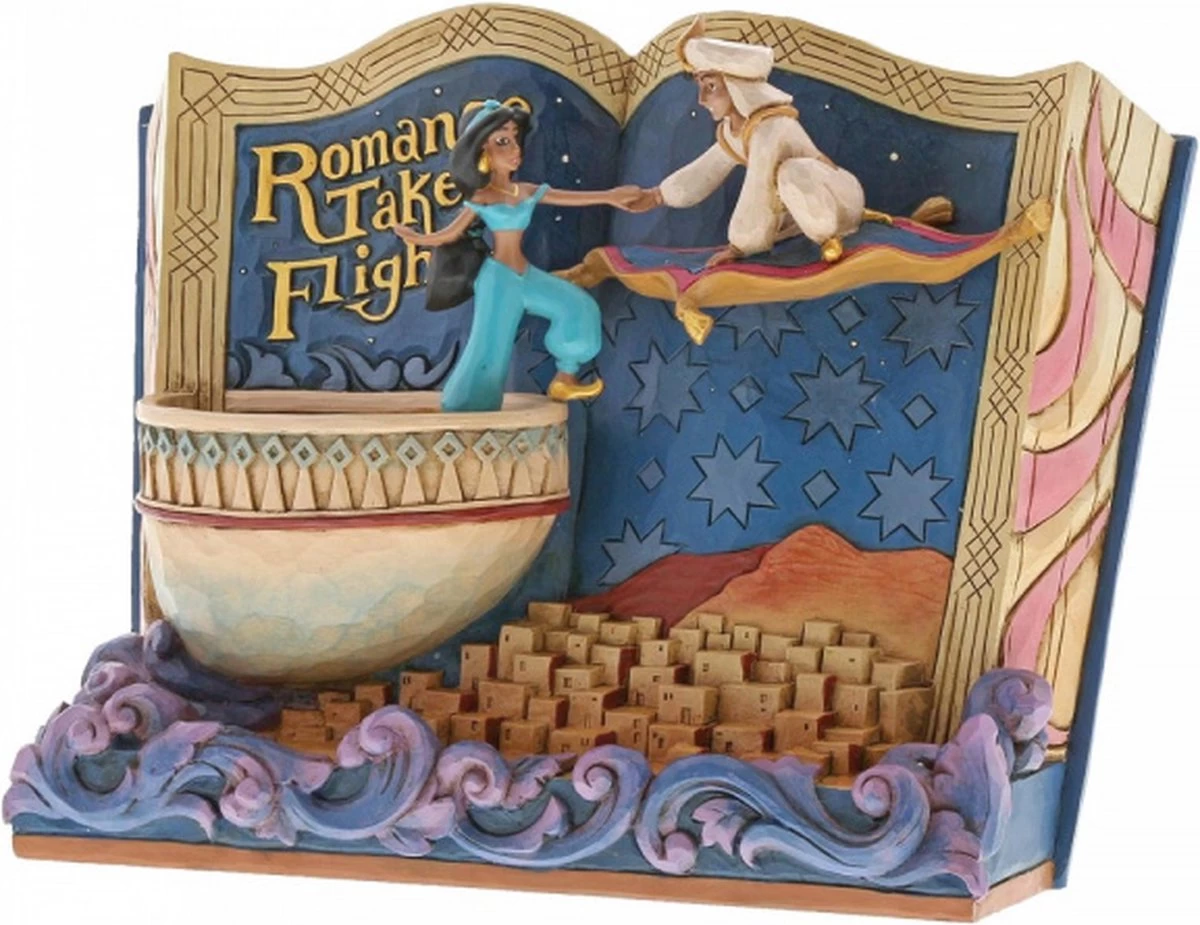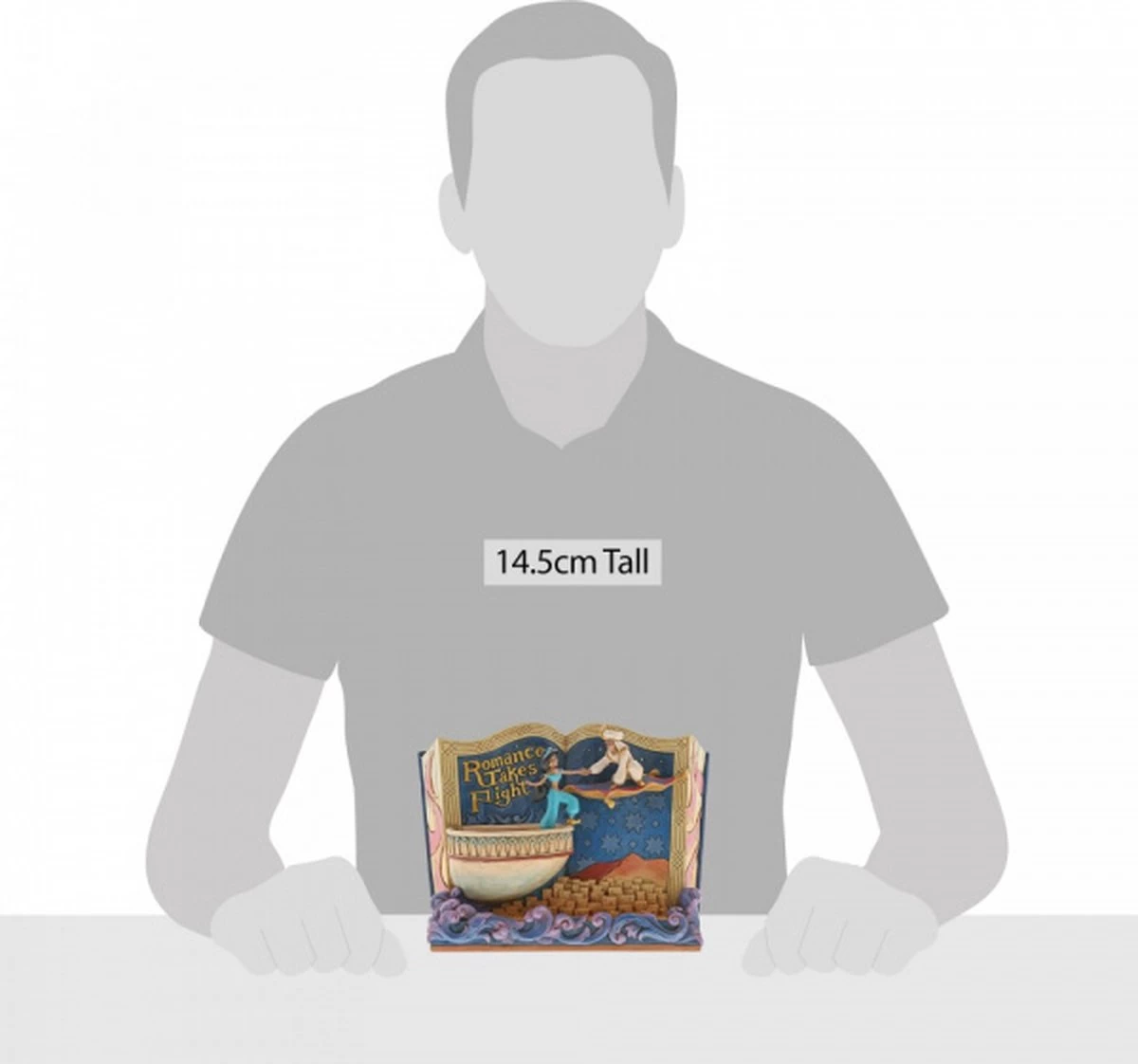 Romance Takes Flight, Storybook Aladdin. Prachtig beeldje uit de Disney Traditions Storybook-serie… spaar ze allemaal! Met dit beeldje haalt u een stukje Disney Magie in huis. Disney Traditions by Jim Shore-beeldjes worden al jaren ontworpen de gelijknamige Amerikaanse kunstenaar. Hij is staat bekend om zijn quilt-achtige patronen en kleurgebruik Zijn creaties lijken uit hout gesneden, maar worden van Poly Resin vervaardigd en zijn stuk voor stuk handbeschilderd. Minimale kleurverschillen kunnen dus voorkomen. De warme, nostalgische uitstraling van de beeldjes zorgt voor een grote schare liefhebbers en verzamelaars uit alle lagen van de bevolking en over de hele wereld. De Disney-creaties van Jim Shore zijn gelicenseerd en worden geproduceerd door Enesco. Ieder beeldje wordt in een op-maat-gemaakte verpakking geleverd.