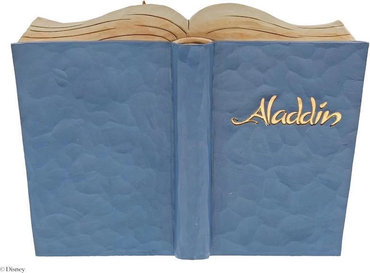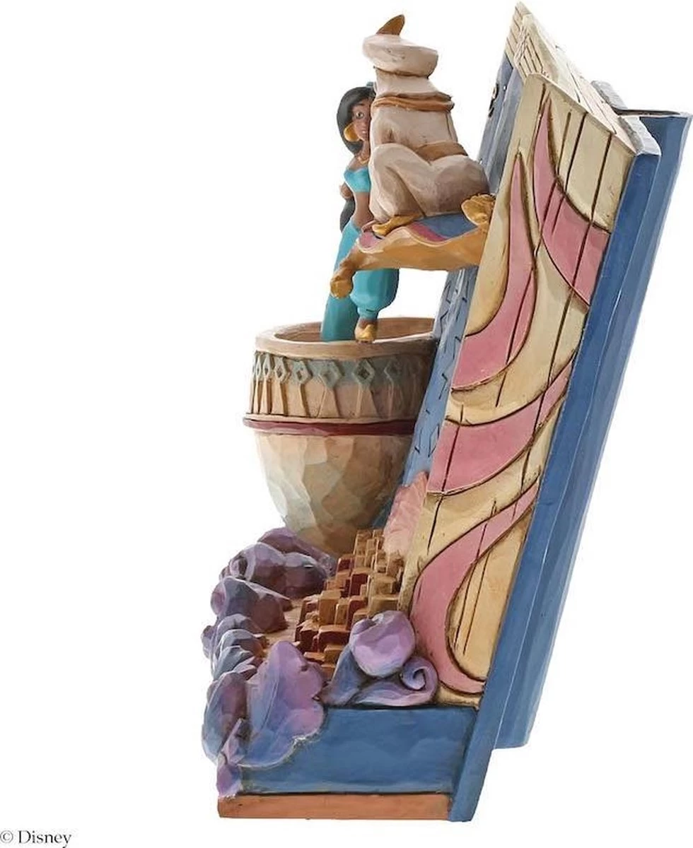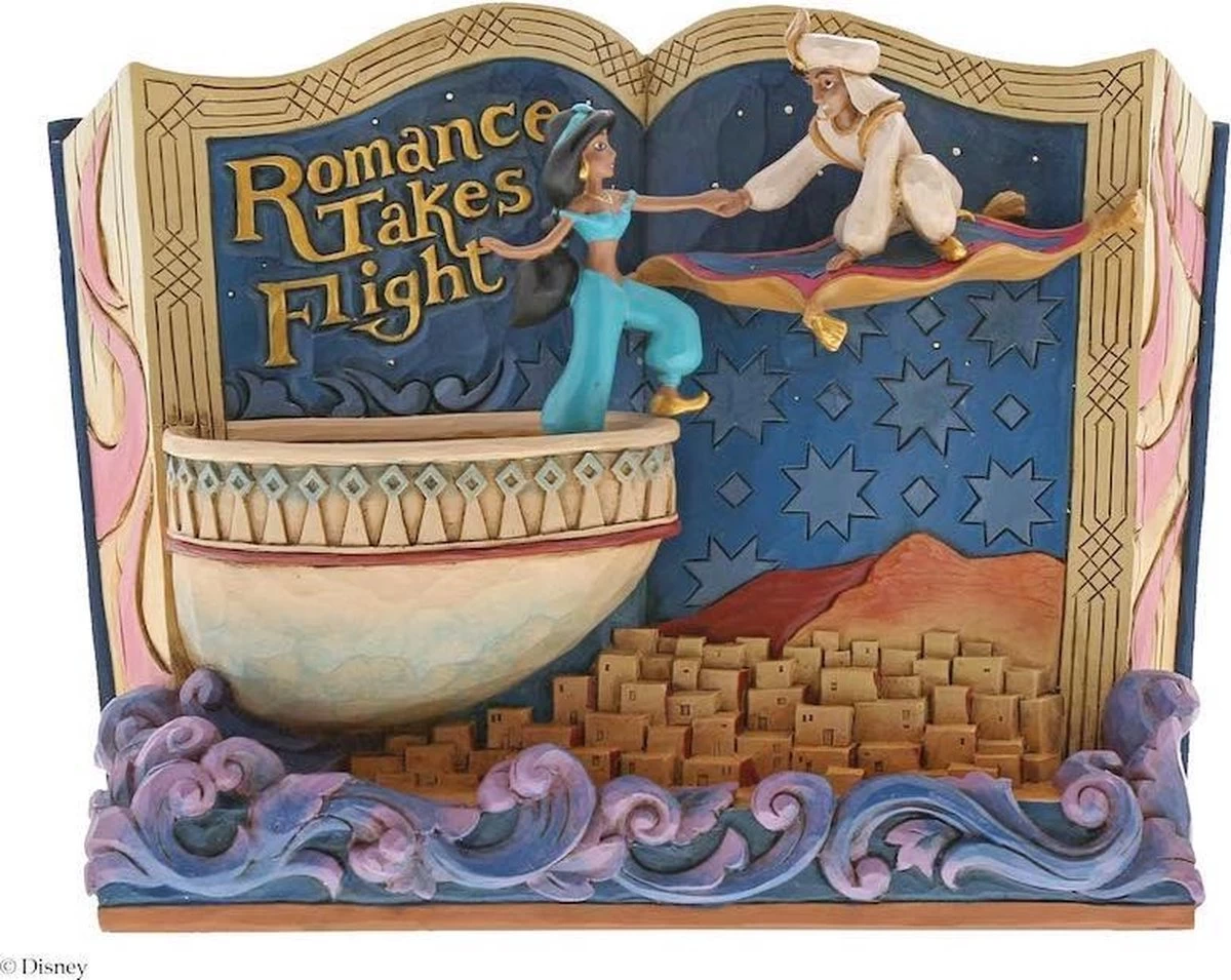 Romance Takes Flight, Storybook Aladdin. Prachtig beeldje uit de Disney Traditions Storybook-serie… spaar ze allemaal! Met dit beeldje haalt u een stukje Disney Magie in huis. Disney Traditions by Jim Shore-beeldjes worden al jaren ontworpen de gelijknamige Amerikaanse kunstenaar. Hij is staat bekend om zijn quilt-achtige patronen en kleurgebruik Zijn creaties lijken uit hout gesneden, maar worden van Poly Resin vervaardigd en zijn stuk voor stuk handbeschilderd. Minimale kleurverschillen kunnen dus voorkomen. De warme, nostalgische uitstraling van de beeldjes zorgt voor een grote schare liefhebbers en verzamelaars uit alle lagen van de bevolking en over de hele wereld. De Disney-creaties van Jim Shore zijn gelicenseerd en worden geproduceerd door Enesco. Ieder beeldje wordt in een op-maat-gemaakte verpakking geleverd.