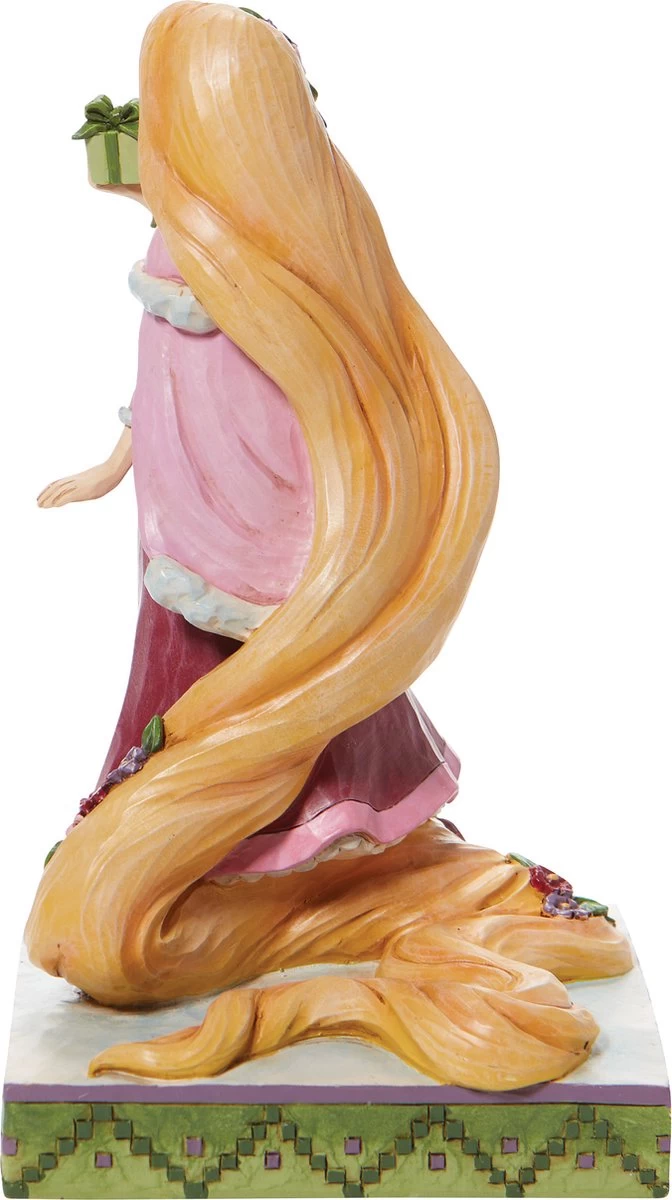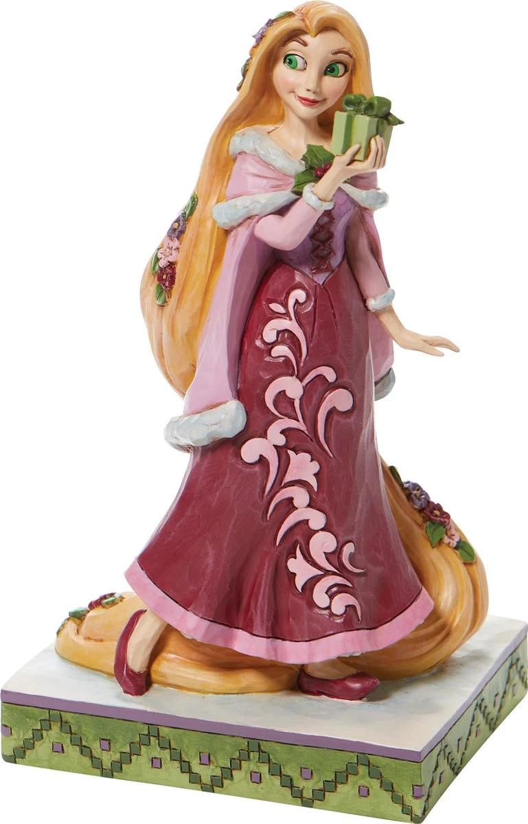 Gifts of Peace (Christmas Rapunzel). Rapunzel is op weg naar Flynn met haar cadeau aan hem. Met dit beeldje haalt u een stukje Disney Magie in huis. Disney Traditions by Jim Shore-beeldjes worden al jaren ontworpen de gelijknamige Amerikaanse kunstenaar. Hij is staat bekend om zijn quilt-achtige patronen en kleurgebruik. Zijn creaties lijken uit hout gesneden, maar worden van Poly Resin vervaardigd en zijn stuk voor stuk handbeschilderd. Minimale kleurverschillen kunnen dus voorkomen. De warme, nostalgische uitstraling van de beeldjes zorgt voor een grote schare liefhebbers en verzamelaars uit alle lagen van de bevolking en over de hele wereld. De Disney-creaties van Jim Shore zijn gelicenseerd en worden geproduceerd door Enesco. Ieder beeldje wordt in een op-maat-gemaakte verpakking geleverd.