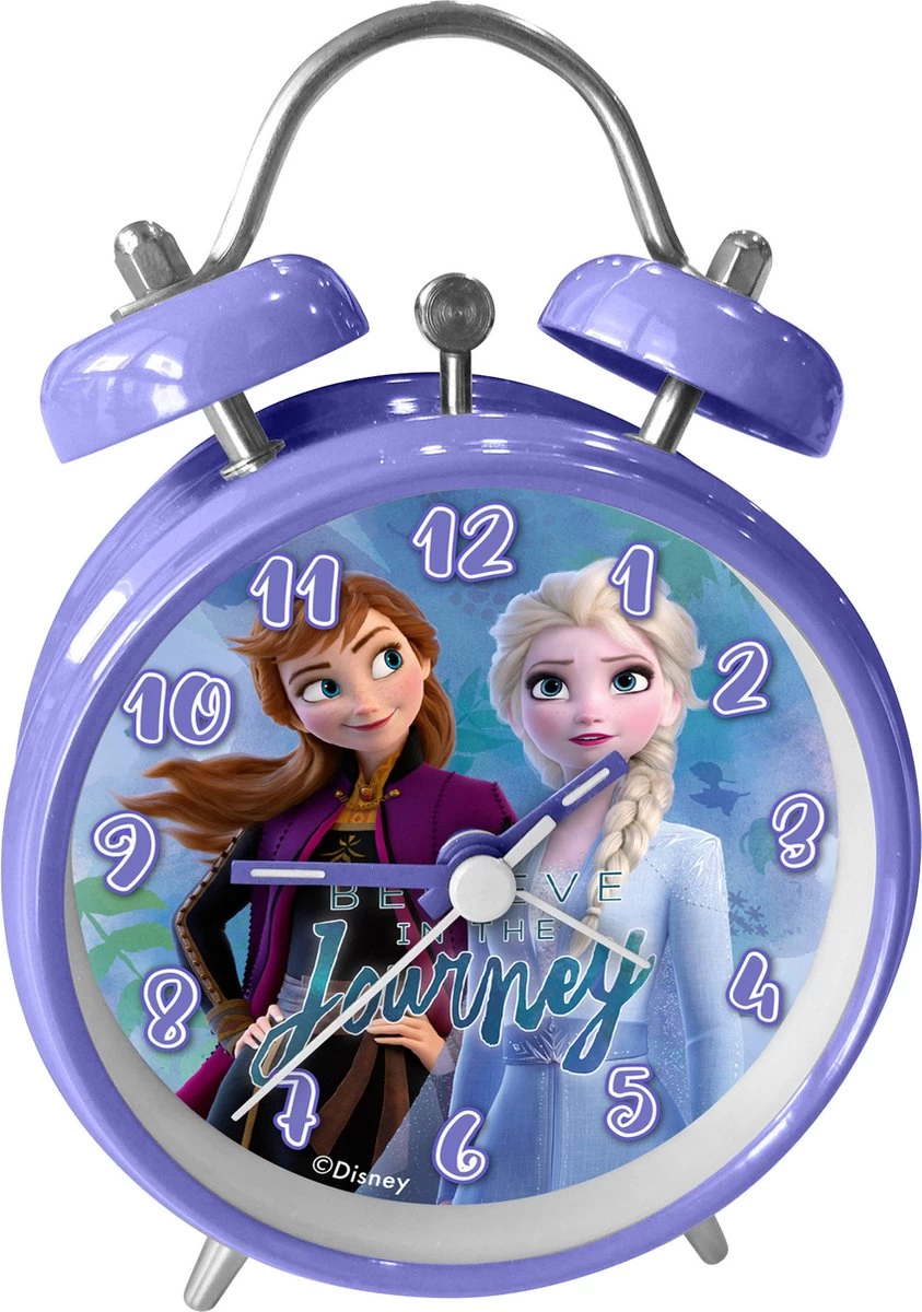Deze mooie wekker met alarm heeft een prachtige afbeelding van jouw favoriete Frozen II karakters Anna en Elsa! Met deze wekker kom je nooit meer te laat op school.