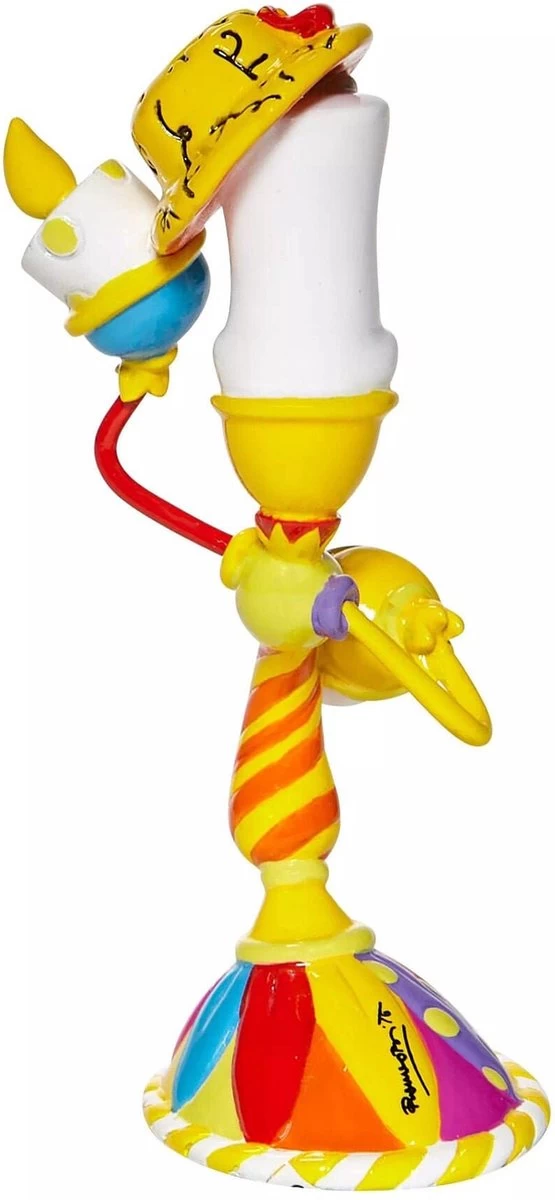 Lumiere, de kandelaar uit Beauty & the Beast. Beeldje uit de Mini’s-serie van Britto. De creaties van de Braziliaans-Amerikaanse kunstenaar Romero Britto staan bekend om hun vrolijke en bonte gebruik van kleuren en patronen. Halfjaarlijks voegt Britto weer nieuwe ontwerpen toe aan zijn Disney-collectie. De beeldjes zijn stuk voor stuk herkenbare Disney-karakters, maar gezien door de ogen van de Britto. Een lust voor het oog en een kleurrijke eyecatcher in je interieur.