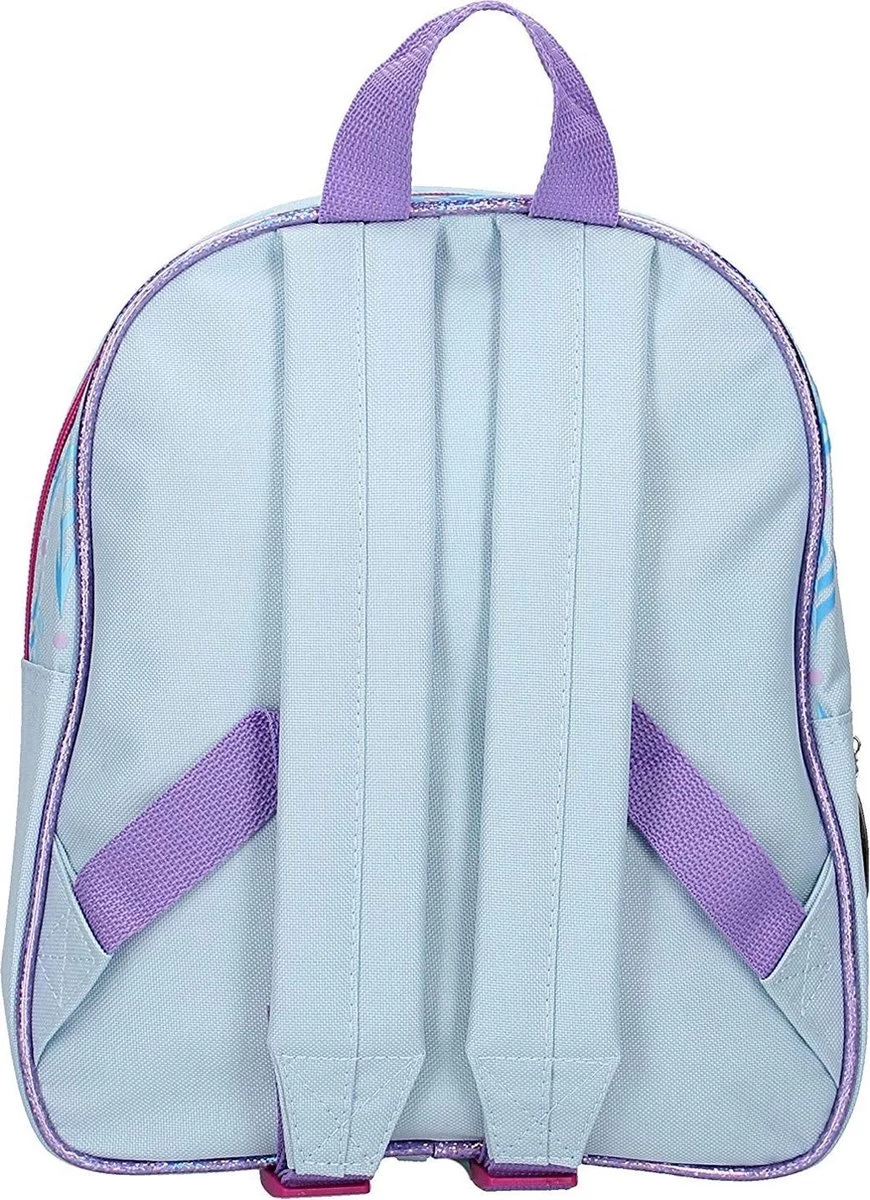 Met deze Frozen II rugzak gaat jouw kind ongetwijfeld vrolijk op pad, naar school of de kinderopvang. De Paars/Blauwe rugtas heeft een grote afbeelding van Elsa & Anna op de voorzijde. De tas bestaat uit een ruim hoofdvak met ritssluiting en een handig voorvak met ritssluiting (23x27x2,5cm). De rugzak heeft een afmeting van 31x30x10 cm (LxBxH) en biedt voldoende ruimte voor een broodtrommel en drinkbeker, (reserve)kleding of andere schoolspullen.