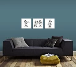Disney – Canvas Set Van 3 – Mickey Mouse Sketch – 3x 30x30cm